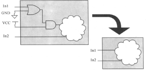 ·边界优化是指在编辑(又叫综合)时,Design Compiler会对传输常数、没有连接的引脚和补码(complement)信息进行优化,如下图所示: