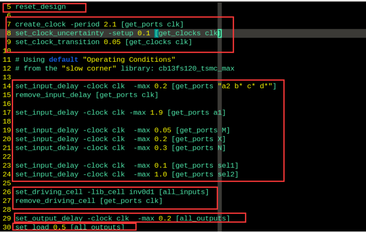 - 边界优化是指在编辑(又叫综合)时,Design Compiler会对传输常数、没有连接的引脚和补码(complement)信息进行优化. 如,没有连接的pin,tie 0 => 相应的逻辑就会被优化。