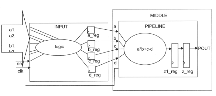 对于寄存器的的优化,举例如下,对于下面的电路,既包含有组合逻辑电路又包含有寄存器:
