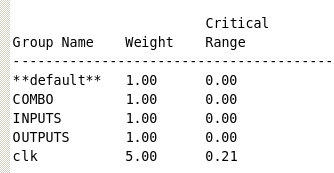 - 设置关键范围后.即使DC不能减少设计中的最差负数冗余(Worst NegativeSlack,它也会减少设计中总的负数冗余(Total Negative Slack) 。