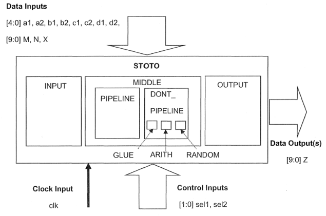 可以知道:MIDDLE, OUTPUT, DONT_PIPELINE, GLUE, ARITH and RANDOM这些模块都被打散了; 没有被打散的,也就是保存了模块结构的只有下面的这三个设计:STOTO, PIPELINE, INPUT