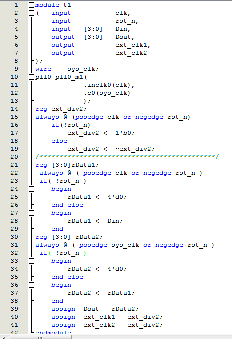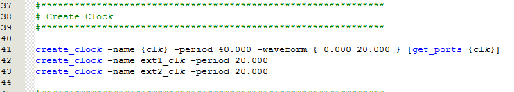 约束ext_clk1和ext_clk2: create_generated_clock -name ext_clk1 -source [get_keepers {ext_div2}] [get_ports {ext_clk1}]