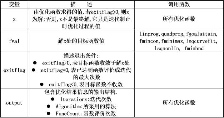 优化函数的输出变量