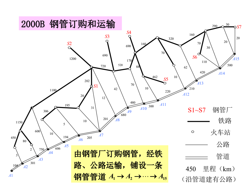 整公里部分按整公里计算)。钢管可由铁路、公路运往铺设地点(不只是运到点A1,A2,……,A15 ,而是管道全线)。