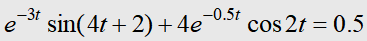 y=exp(-3*t)*sin(4*t+2)+4*exp(-0.5*t)*cos(2*t)-0.5;