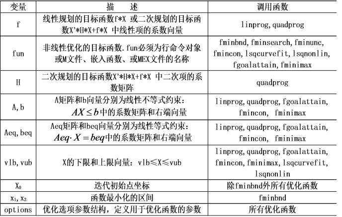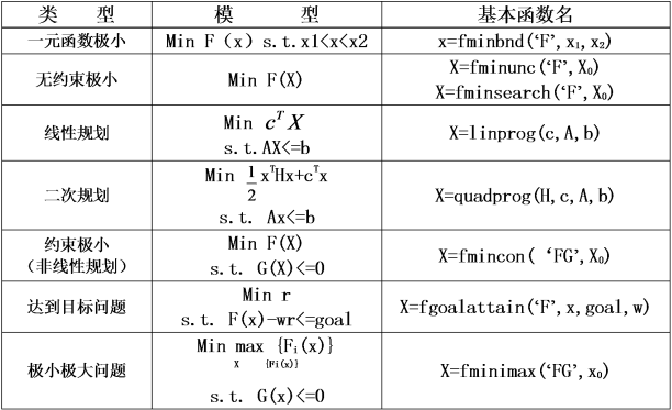MATLAB 求解优化问题的主要函数