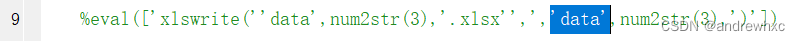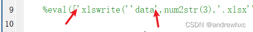 2、xlswrite前面的 ' 号和下图中的 ' 号是一对,下图中第三个 ' 号是对第二个 ' 号的转义,这部分代替了下图3部分