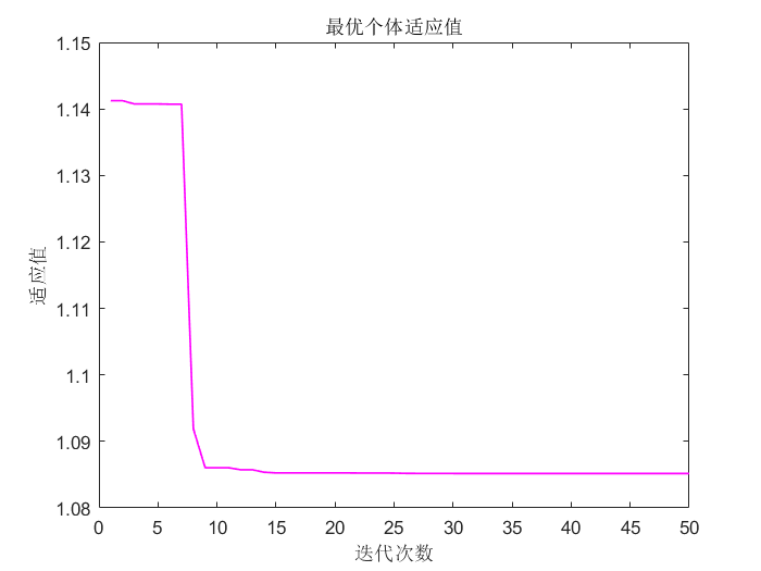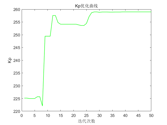 由于是求最小值,而取目标函数为适应度函数,所以适应度是呈下降的趋势;由于这里PID优化参数中i的变化很小,为了展示其优化的过程,所以将PID3个参数的优化值分别拿出来展示。