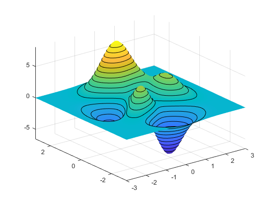 例如,下列语句首先创建 peaks 函数的曲面图,然后叠加同一函数的等高线图: