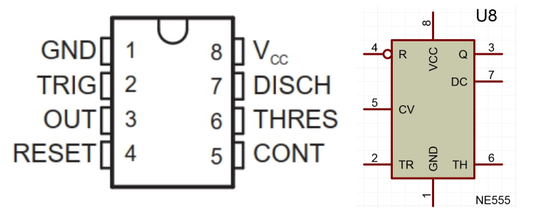 (2)8脚:外接电源VCC,双极型时基电路VCC的范围是4.5 ~ 16V,CMOS型时基电路VCC的范围为3 ~ 18V。一般用5V。