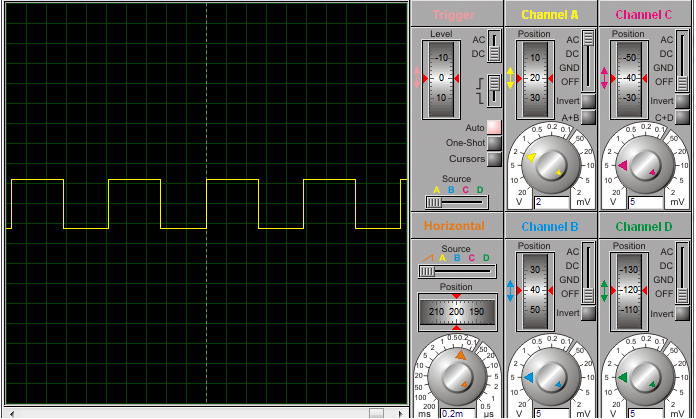 图3.3.2 -- 555多谐振荡器模块输出基波波形(黄色)