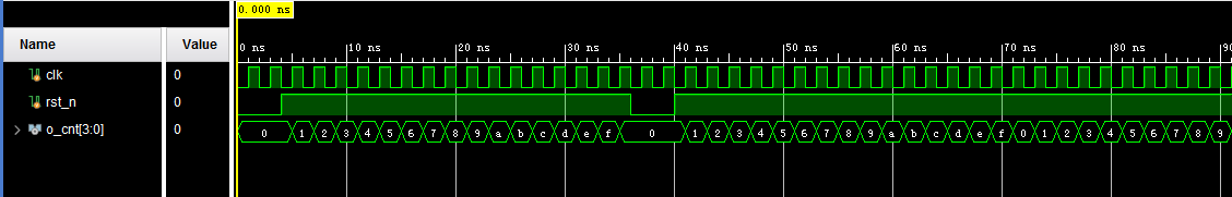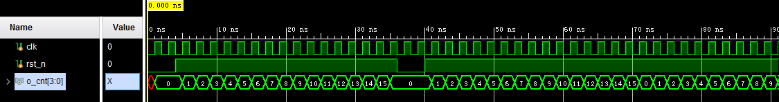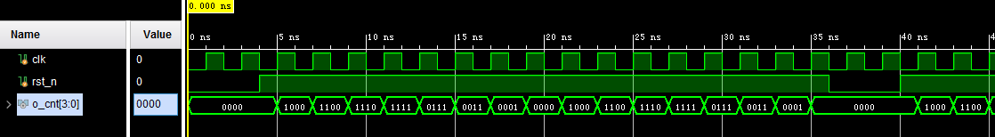 上面是异步复位的仿真图,下面给出同步复位的仿真图: