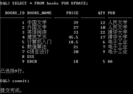 事务提交后,其它用户可以修改sys用户下books表的信息