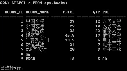 锁定sys用户在的books表