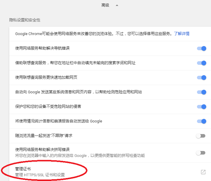 当出现网站连接非私密连接不受信任时,可添加证书crt文件到系统证书里设置为受信任