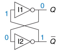 为什么介绍双稳态器件呢?那是因为锁存器、寄存器都是双稳态器件,它们都有两个稳定状态1和0。正是因为它们有两个稳定的状态,因此才可以拿它们来存储数据,也就是说双稳态电路(比如交叉耦合反相器、锁存器和寄存器)可以存储数据。下面我们就来看看锁存器和寄存器吧。