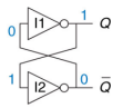 我们再假设I1的输出先为0,即Q=0;那么I2的输入为0,Q’就为1,于是反馈给Q的输入,导致Q的输出为0,也就是使得Q的状态稳定为0,因此这个器件还有一个稳定的状态为0.如下图所示: