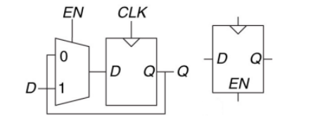 由D触发器延伸出去的知识点还有很多,比如寄存器,寄存器由多个D触发器构成(一个D触发器可以看做1位的寄存器);比如带使能的触发器: