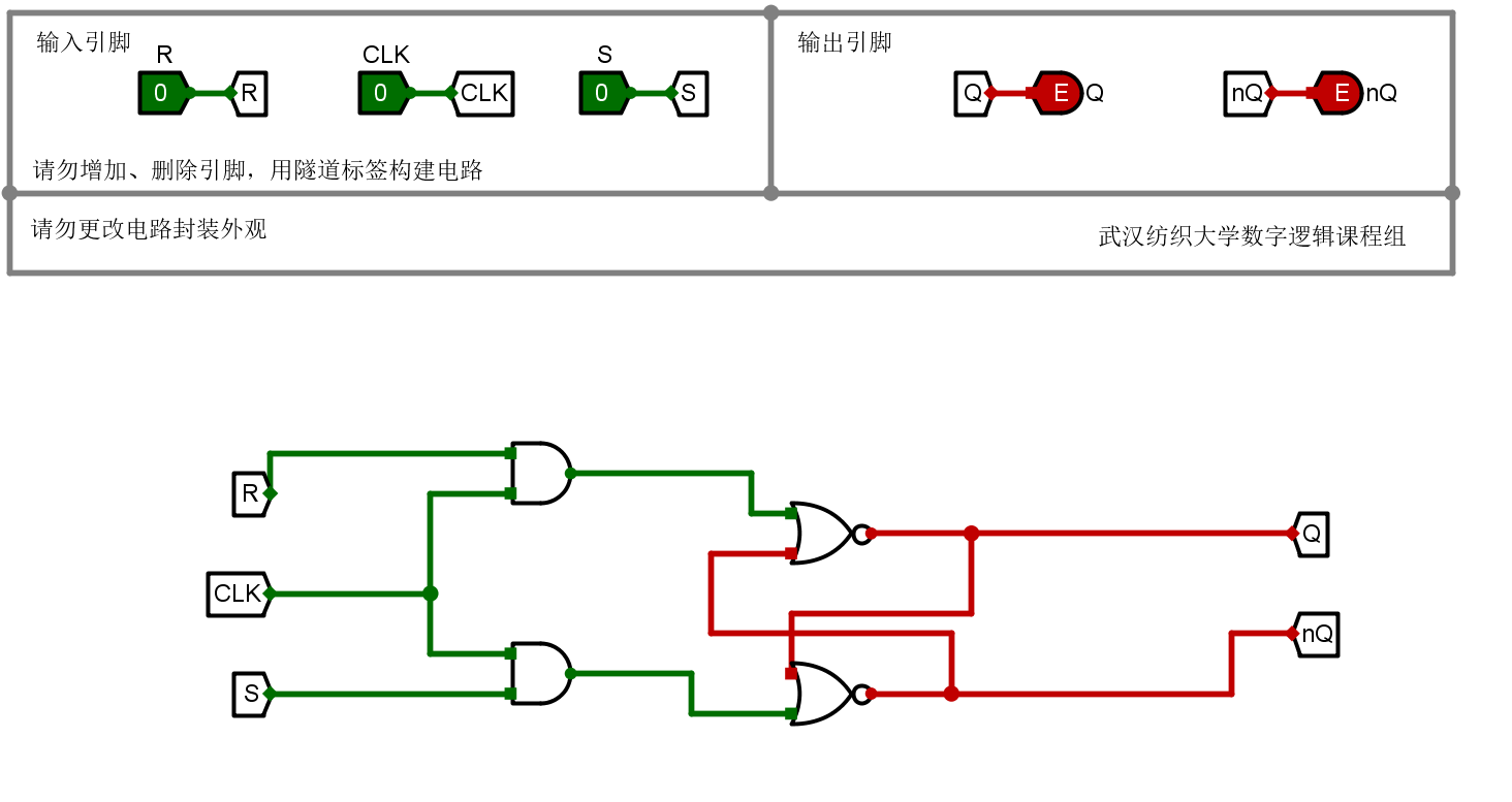本关任务:在Logisim中,在基本锁存器的基础上构建门控SR锁存器。