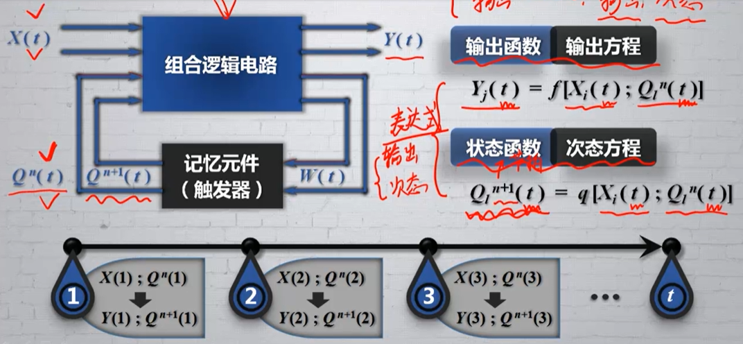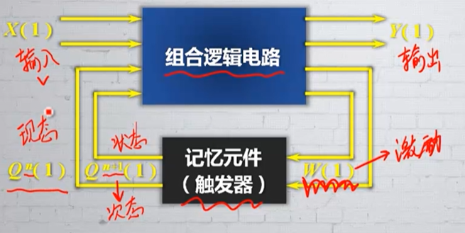 - 莫尔型:输出信号只与电路的现态有关