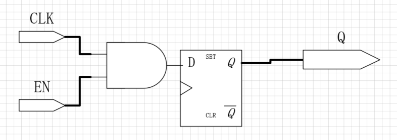 即当CLK = 1,且EN =1 时,才能传递数据,保证了虽然时钟周期上升沿到了,但是仍然不想传递数据问题的解决,很大程度上提高了可控性。