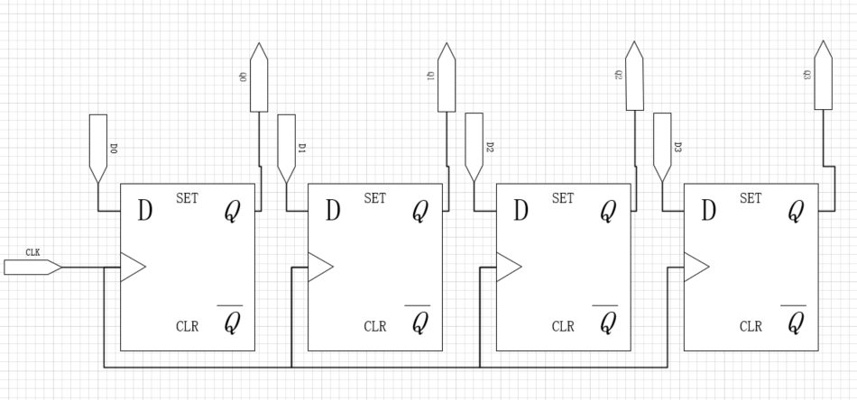 一个N位寄存器往往都是由N个触发器和共享的一个CLK输入组成