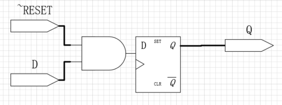 为D触发器添加~RESET输入,如果RESET为False,则带复位的D触发器和普通D触发器一样,当RESET = TRUE,则带复位功能的触发器忽略D并将输出Q复位为0。