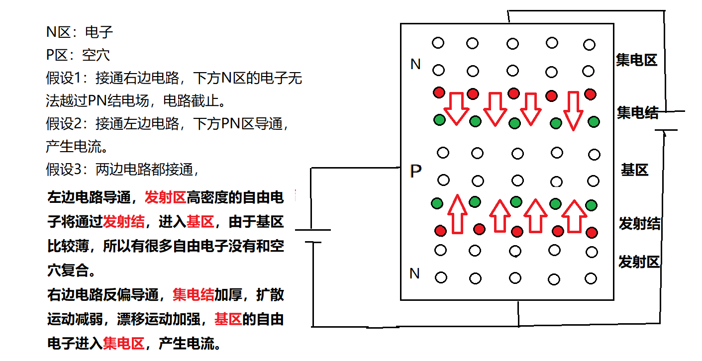 在这3层半导体中,中间一层称基区,外侧两层分别称发射区和集电区。
