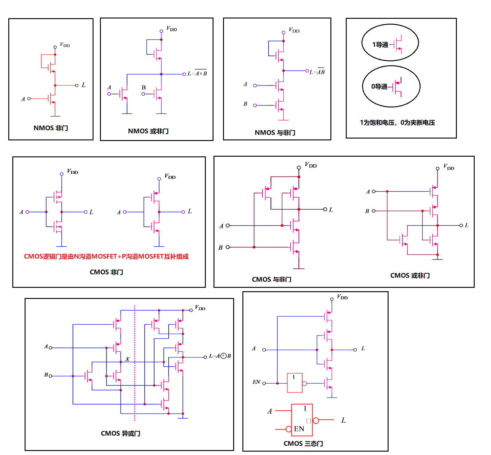 CMOS非、与非、或非、异或、三态门