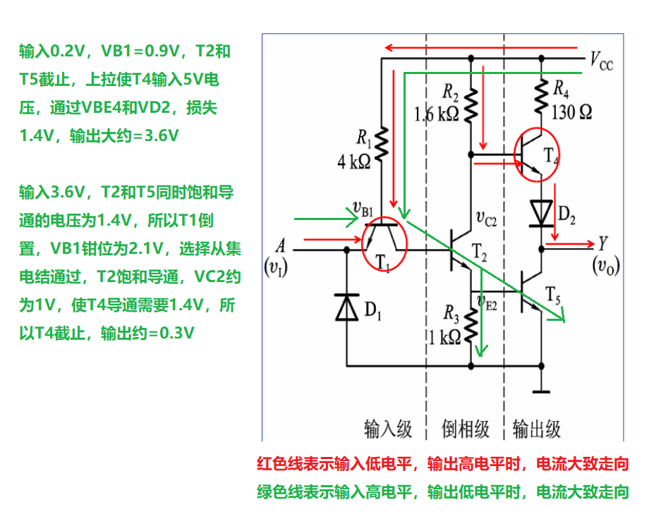 这里再说一下TTL反相器,(硅管正偏压降0.7V)
