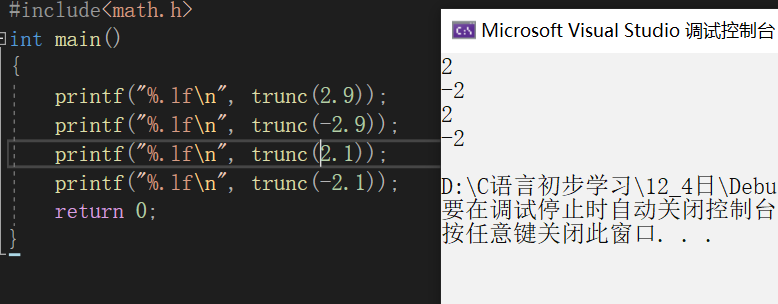 我们可以发现,当使用了trunc函数以后,被操作数的值都是向0取整的。