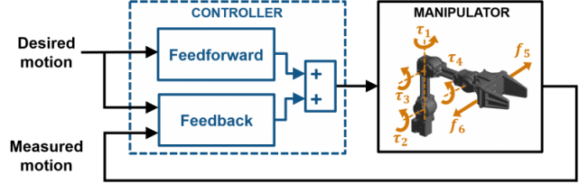 - 前馈:使用所需的运动只计算联合输入。这往往-但不一定-涉及一个模型的机械手力学计算开放回路输入。