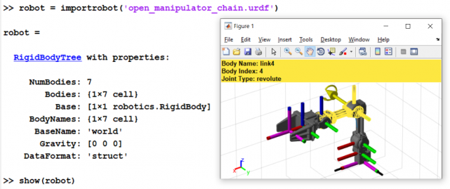 我们在视频 "设计机器人机械手算法" 中进行了讨论, 其特点是4自由度ROBOTIS OpenManipulator 平台。您可以从MATLAB 中央文件交换下载示例文件.