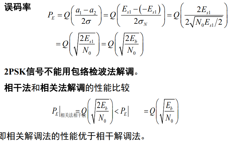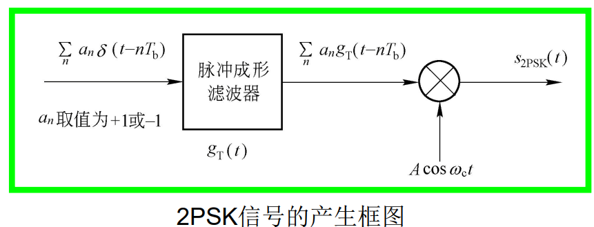 若基带信号的波形函数为门函数,2PSK信号可简要表示为