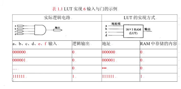 本质上是RAM,一个6输入的LUT中包括6为地址线的64*1的RAM,6输入的LUT有64中输出结果,将64中结果存储下来,可以根据不同的地址输入查找处相应输出结果。