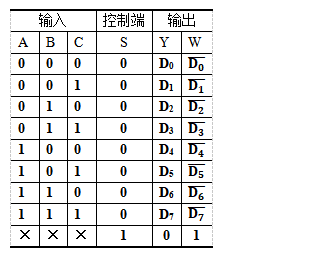 表2.3.1 74151的功能表测试