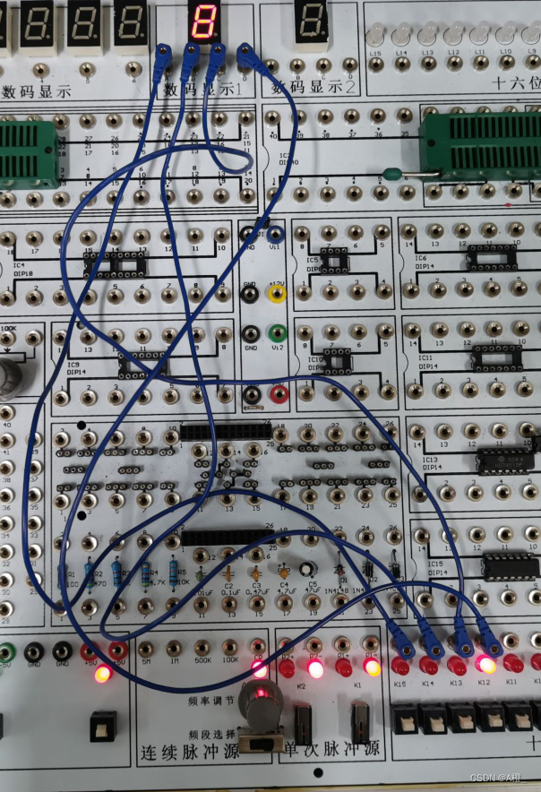 4.在布线时要注意芯片的各个引脚对应的功能,布线要尽量有条理,通过该实验进行了布线的练习