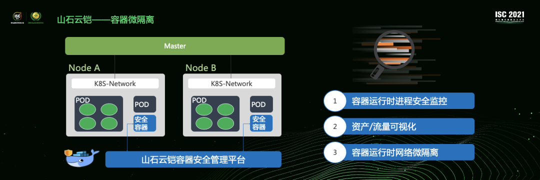 今年山石网科又发布了一个容器安全产品山石云铠,微隔离是主打功能之一,可以认为属于第三方主机Agent的技术路线,不过这个Agent在Kubernetes环境下也是个容器,事实上,云铠这个产品更符合Gartner说的CWPP,我们后面会让它也能覆盖虚机和物理机。