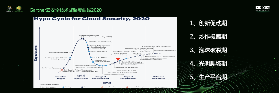 Gartner2020年的云安全技术成熟度曲线,微隔离已经进入了光明爬坡期,市场价值和技术成熟度都肯定没争议了。