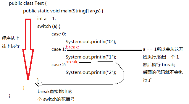 System.out.println("switch中的 1执行了");