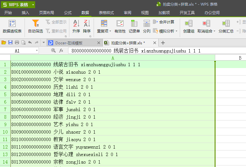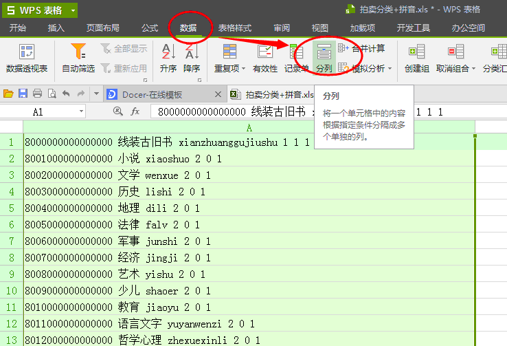 2,点击“数据”-“分列”。