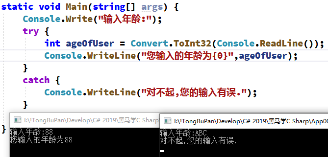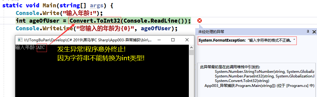 注意:Convert.ToInt32("string")本质上调用int.Parse("string")方法