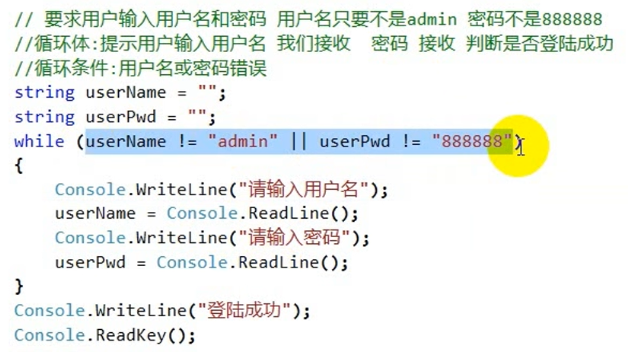 参见https://docs.microsoft.com/zh-cn/dotnet/csharp/language-reference/keywords/while