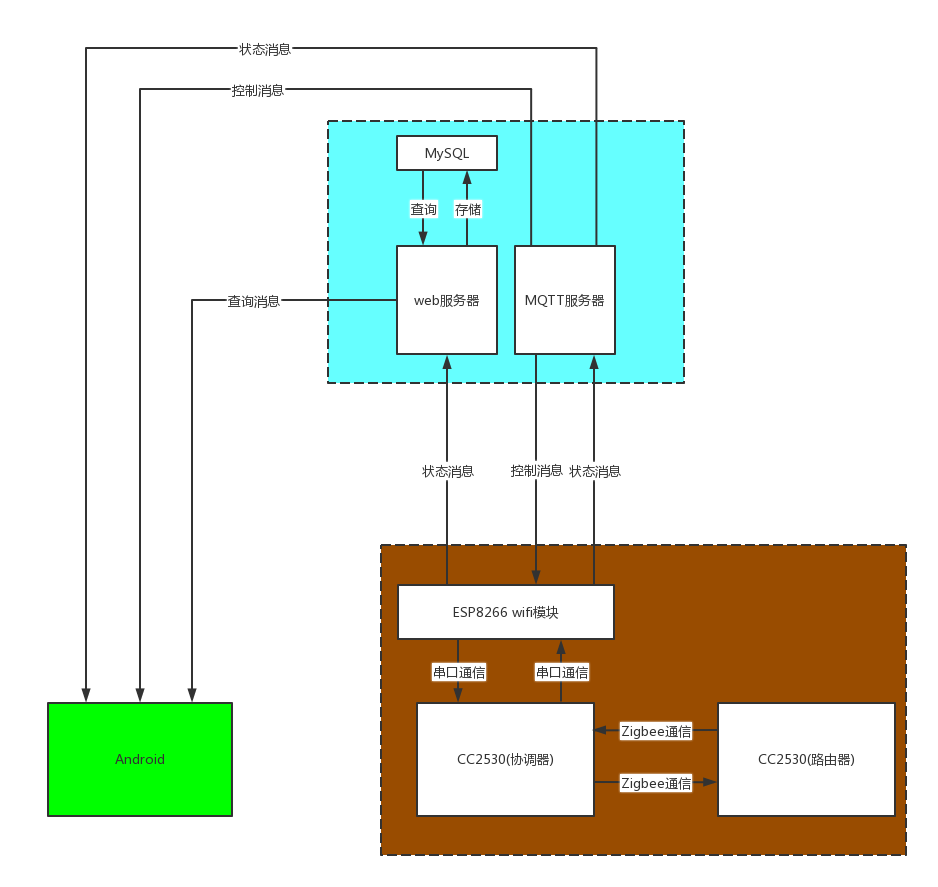本项目可用于不可嵌入安装门锁的门,实现门锁的智能控制。项目包含硬件、云服务器和 Android 客户端。其中硬件平台采用两个 Zigbee 设备实现设备间通信,云服务器包含 Web 服务器和 MQTT 服务器,客户端通过和服务器通信间接控制硬件。