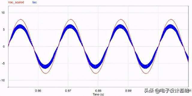 而这个信号将作为输入电流的参考信号。那么如果后级的控制器设置得当,电流将会跟随上图这个信号.