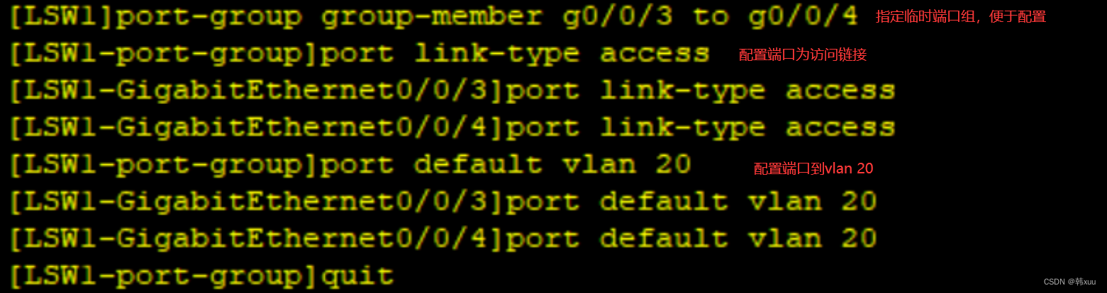 [系统视图] port-group group-member g0/0/3 to g0/0/4