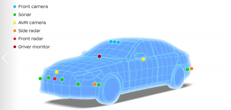 相比较特斯拉Autopilot 系统只用了1台毫米波雷达系统,日产ProPilot 2.0直接增加到了5台,涵盖中长测距,可谓直接越过L2.5级的水平,达到其宣称的L3级自动驾驶。