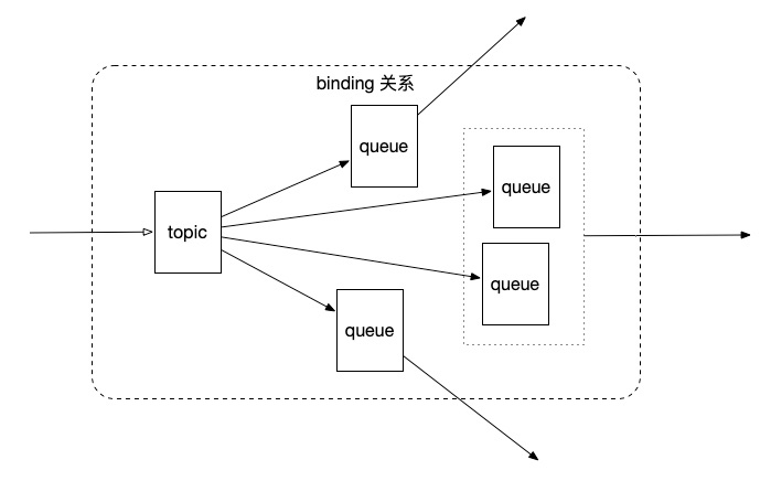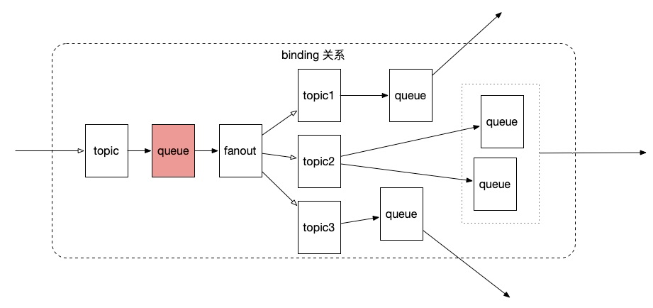 此时,是长这样的,每个接入的业务方需要申请一个 Topic , Topic 之下挂多少 Queue 可以根据业务需求自己确定。
