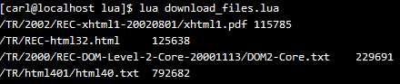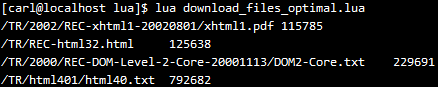 一个很典型的multithreading场景:通过http下载多个remote files。我们先来看下如何下载一个文件,这需要使用LuaSocket库,如果你的开发环境没有这个库的话,可以看下博主的另一篇文章Lua基础 安装LuaSocket,了解下如何在Linux上安装LuaSocket. 下载一个file的lua代码如下: