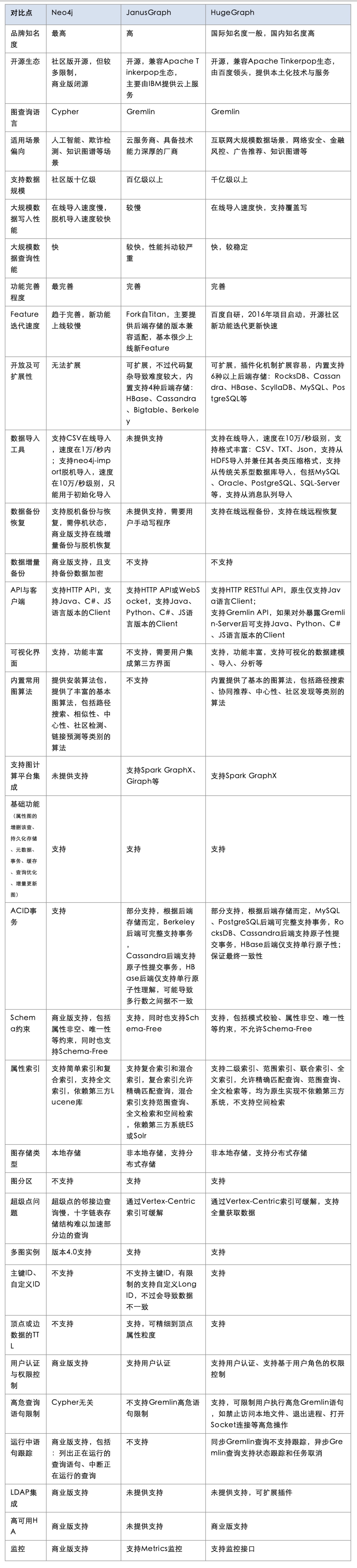 以上就是迷路板凳最近收集整理的关于一文看尽图数据库选型,30多个指标全面比较Neo4j、HugeGraph、JanusGraph的全部内容,更多相关一文看尽图数据库选型内容请搜索靠谱客的其他文章。